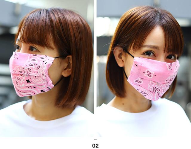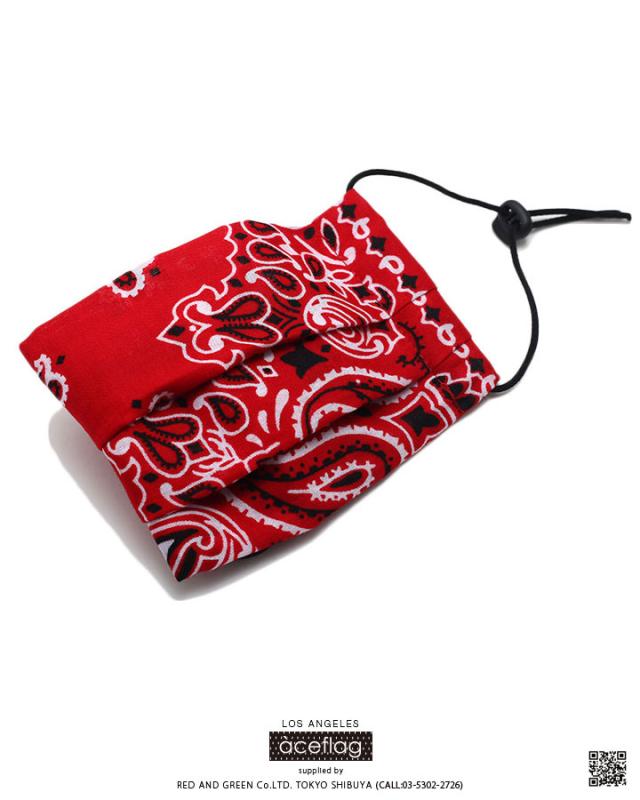 西海岸系ブランドの先端を行く、ACEFLAGならではの柄マスク。伝統的なペイズリー柄のバンダナを裁断し、プリーツ状に縫製した立体型デザイン。