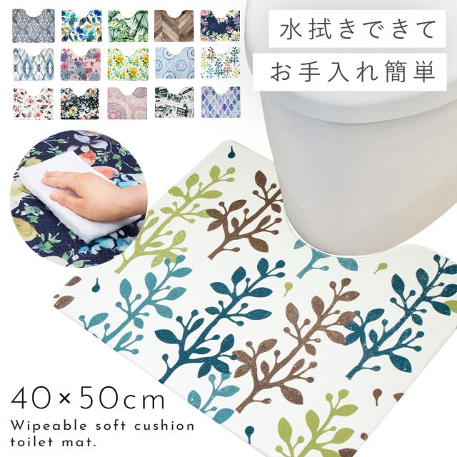 【40cm×50cm】 トイレマット 拭ける pvc 50x40cm ミニ すべり止め トイレ マット 滑り止め 抗菌防臭 防カビ 防炎 花柄 ヘリンボーン レース モロッカン 柄 ボタニカル モノトーン トイレマット ミニ