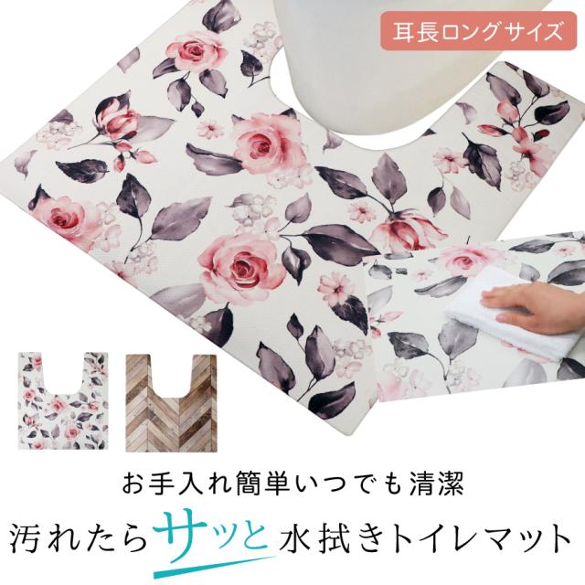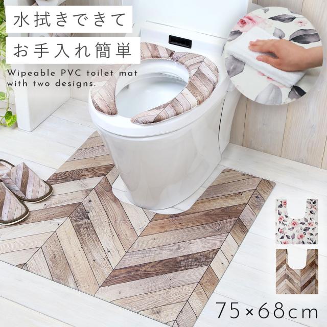 【75cm×68cm】 トイレマット 拭ける pvc 75×68cm すべり止め ロング 耳長 長い トイレ マット 滑り止め 抗菌防臭 防カビ 防炎 花柄 ヘリンボーン トイレマット 耳長ロング