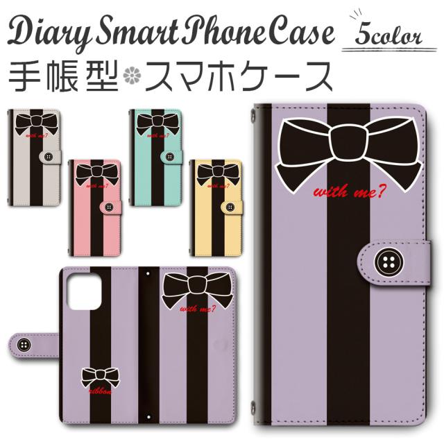 スマホケース スマホ ケース スマホカバー スマホ カバー 手帳型 iPhone 12 / 12Pro アイフォン12 対応 送料無料 リボン ストライプ / dc-037