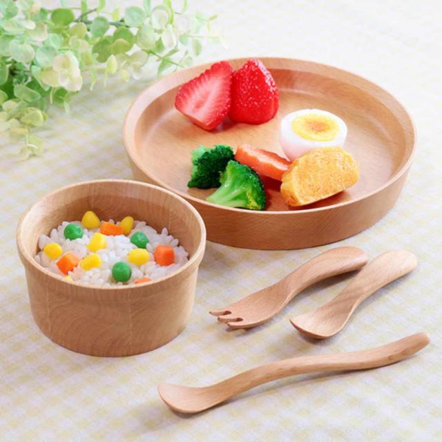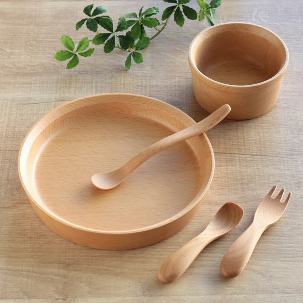 成長に合わせて長く使える 天然木食器5点セット