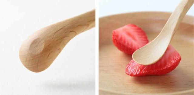 離乳食時期に便利なフィーディングスプーンは食材を潰しやすいように、すくう部分の裏側には平らな加工が施されています。