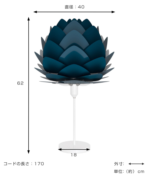 | サイズ | 約 高さ62(cm) 直径:約 40(cm) ベース:直径18(cm) |