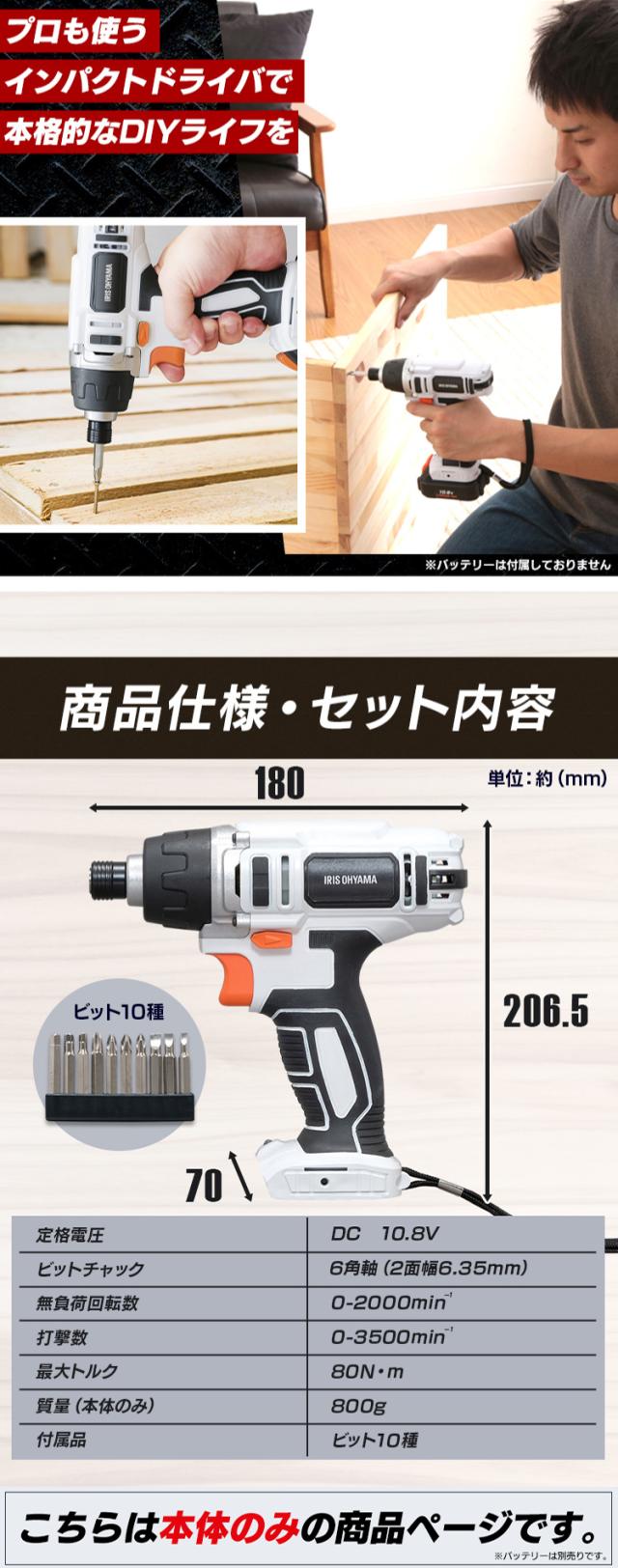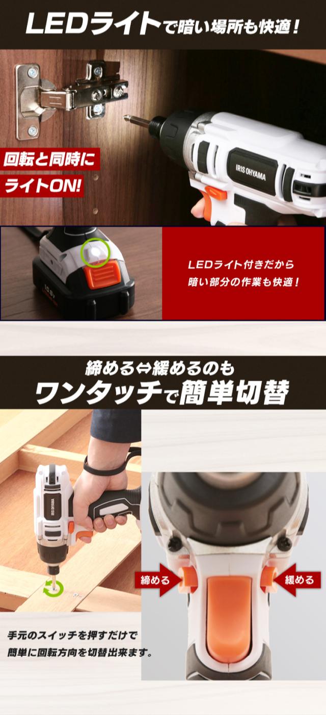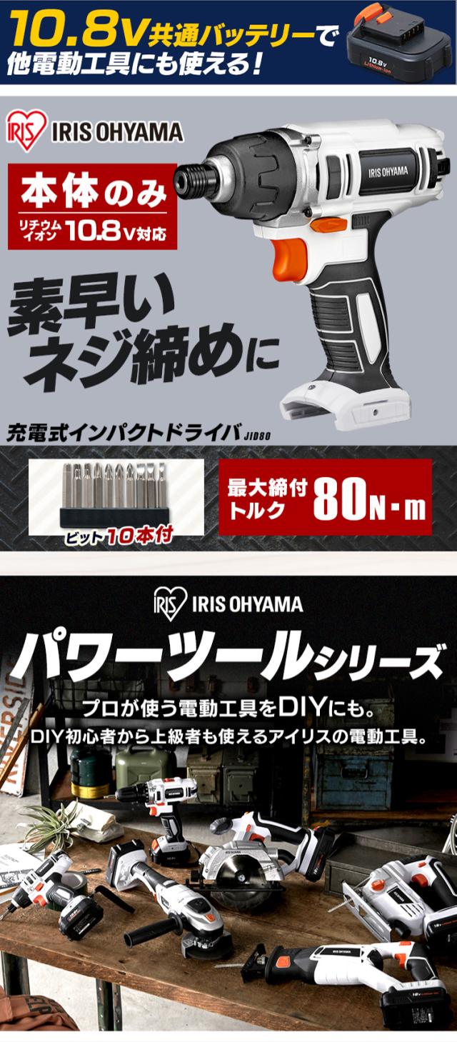 充電式インパクトドライバー JID80-Z ホワイト 充電式 インパクトドライバー DIY 工具 軽量 ハイパワー 電動 電動工具 工作 日曜大工 アイリスオーヤマ 送料無料