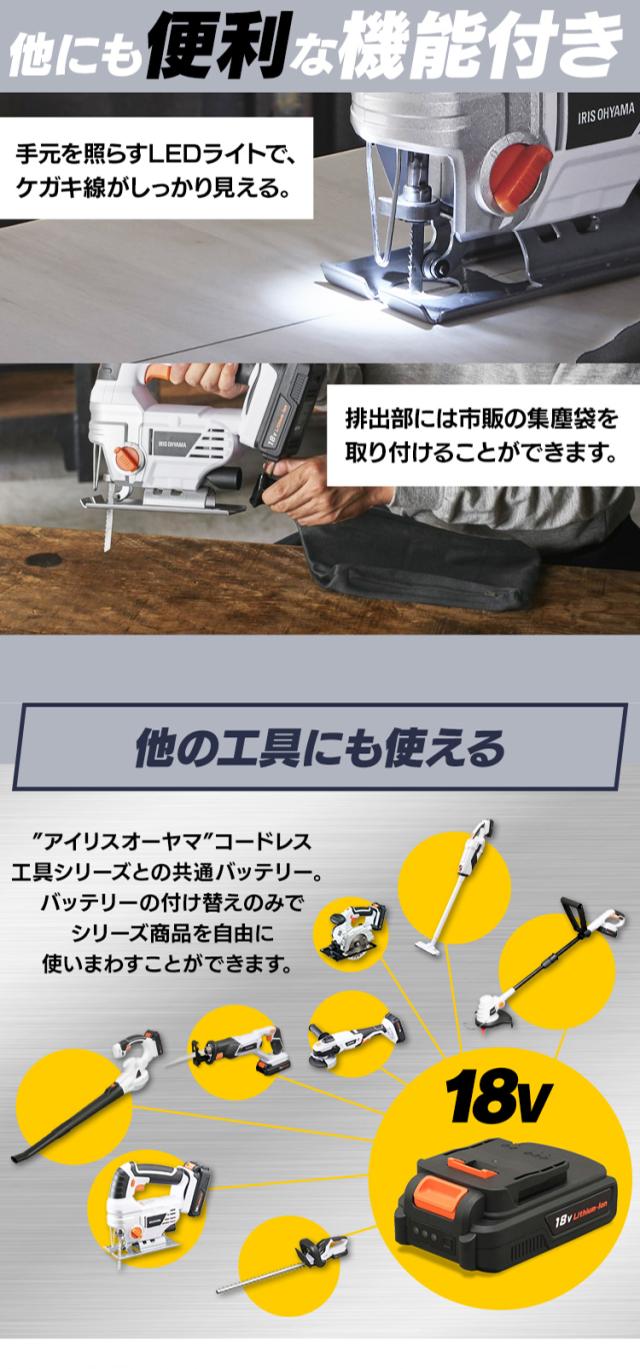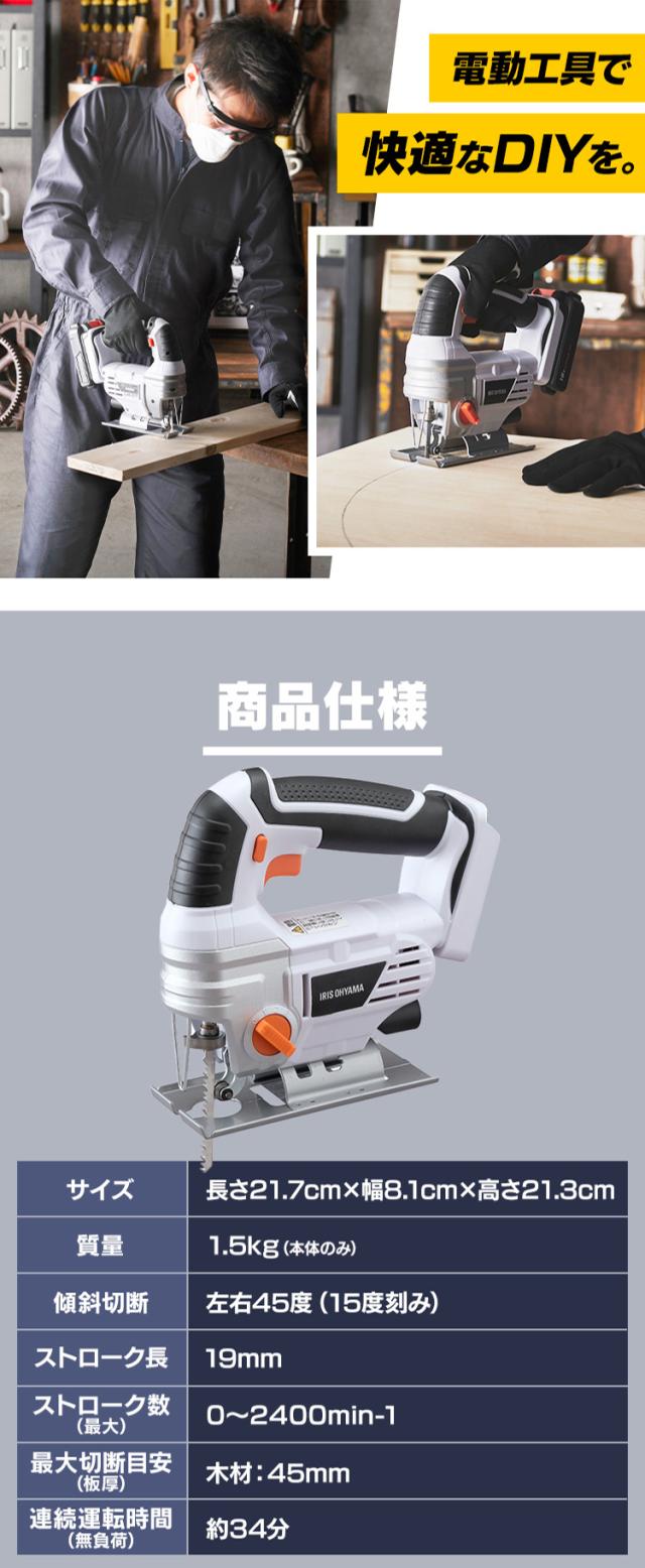 充電式ジグソー JJS181-Z ホワイト 充電式 ジグソー DIY 工具 軽量 ハイパワー 電動 電動工具 工作 日曜大工 アイリスオーヤマ 送料無料