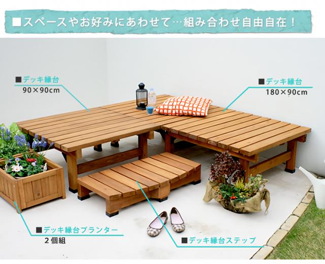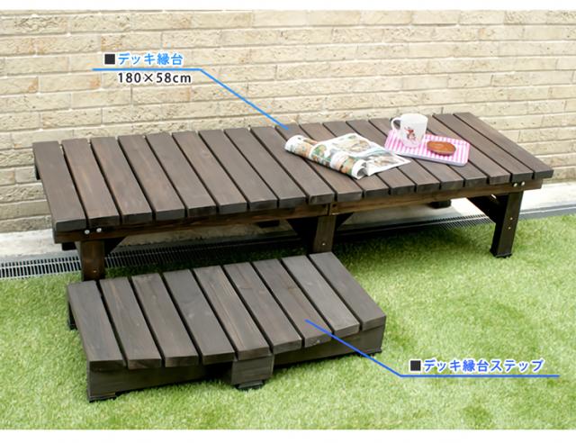 デッキ縁台ステップ 90x45cm DES-90 ウッドデッキ デッキ 縁台 ガーデニング 屋外 ガーデン 庭 テラス ブラウン 木製 キッド ベンチ