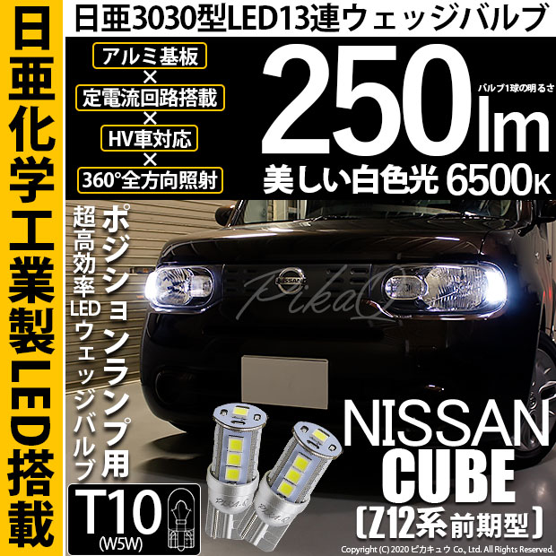 ニッサン キューブ (Z12系 前期) 対応 LED T10 ポジションランプ用LED 13連 250lmlm ホワイト 日亜3030 6500K LED ウエッジバルブ 日亜化学工業製素子使用 2個 11-H-7