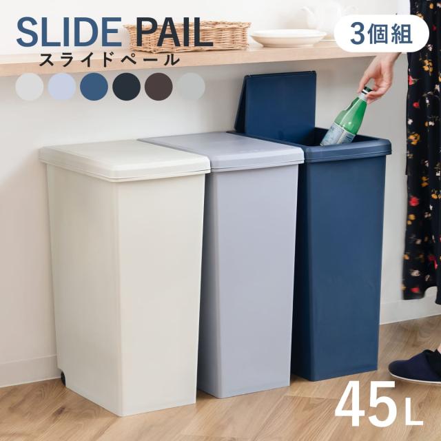 ゴミ箱 45L 同色3個セット スライドペール 無地 ふた付き ( ごみ箱 45リットル スリム スライド蓋 キッチン 分別 縦型 3個 まとめ買い セット ダストボックス 蓋つき キャスター付き 袋止め付き シンプル おしゃれ )