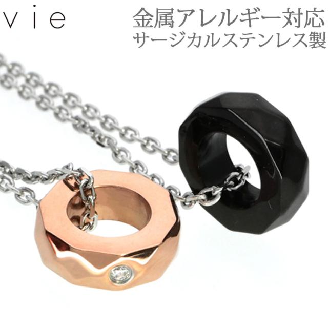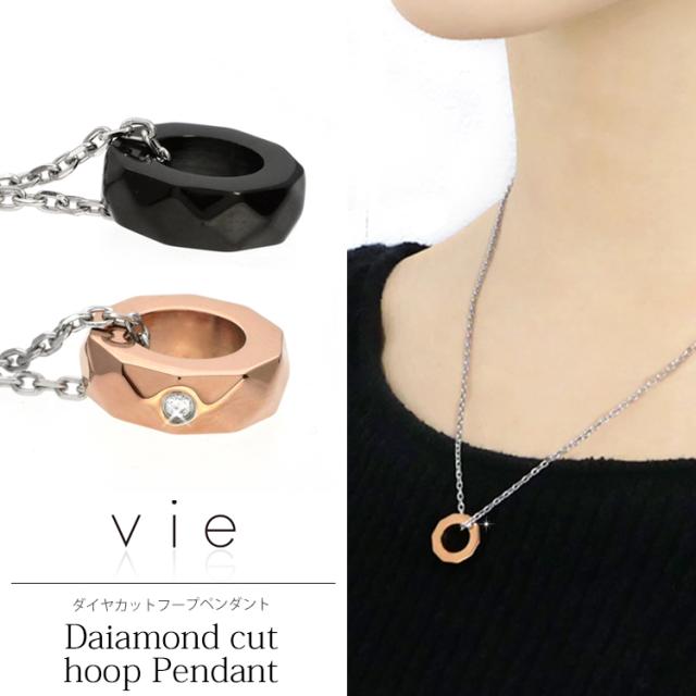 ステンレスネックレス vie ダイヤカットフープペンダント ネックレスチェーン付 バイカラー