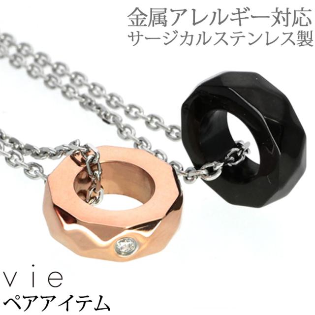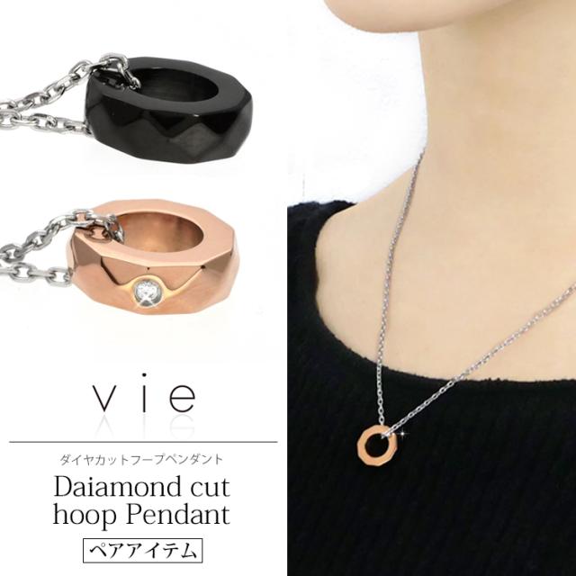 ペアネックレス2本セット ステンレスネックレス vie ダイヤカットフープペンダント ネックレスチェーン付 バイカラー