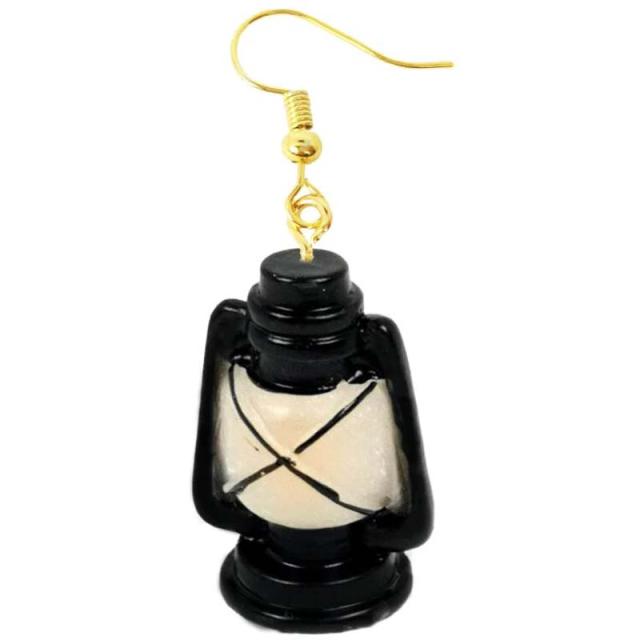 [3D おもしろ ピアス] 雰囲気のあるランタン ステンレスピアス/1個販売 20G 20ゲージ メンズ レディース キャンプ アウトドア ランプ 黒色 山 海 デート 人形 ドールハウス 人気 変なピアス 面白い おもしろい フックピアス プレゼント 立体 ギフト ミニチュア 男 女