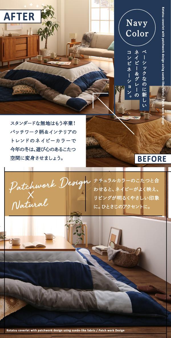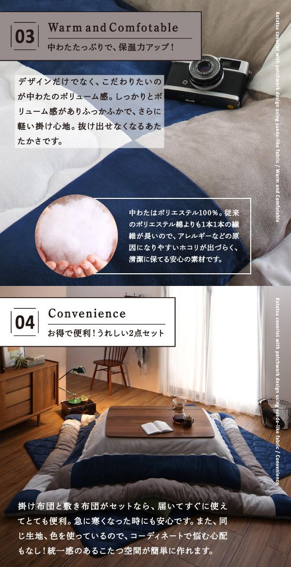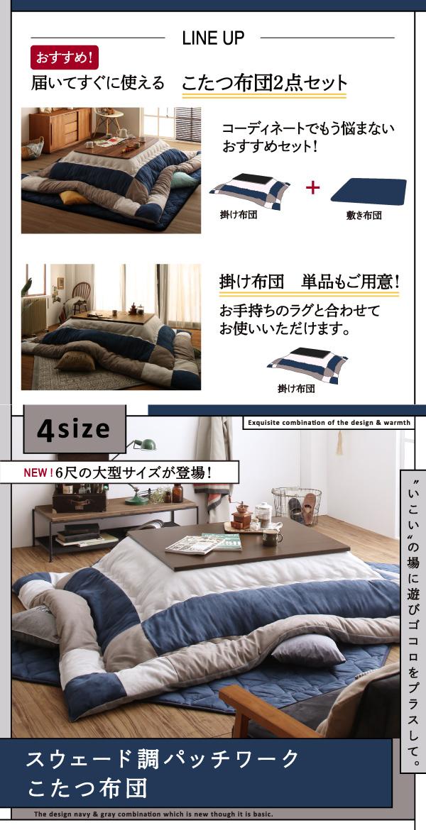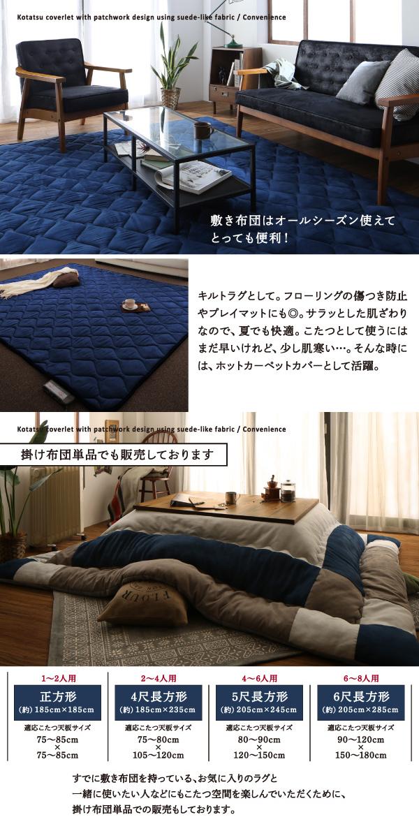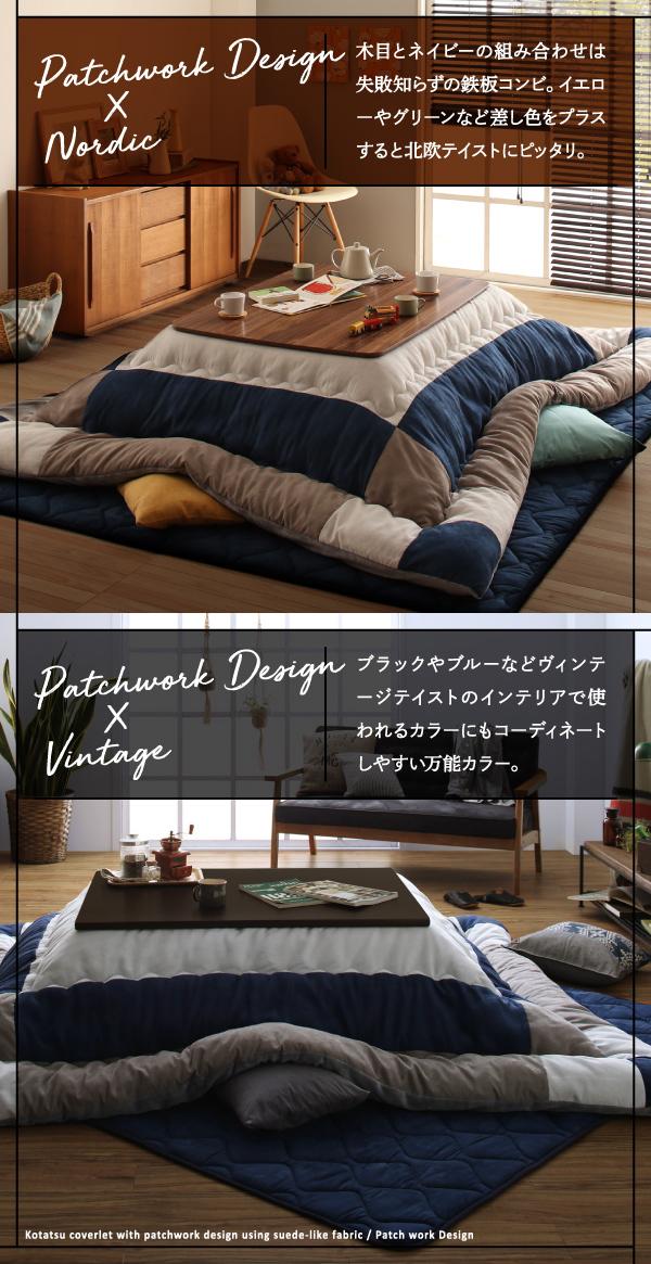 スウェード調パッチワークこたつ布団セットCOV サイズ| 幅205 奥行285cm (長方形)主素材| ポリエステル100%※掛敷2点
