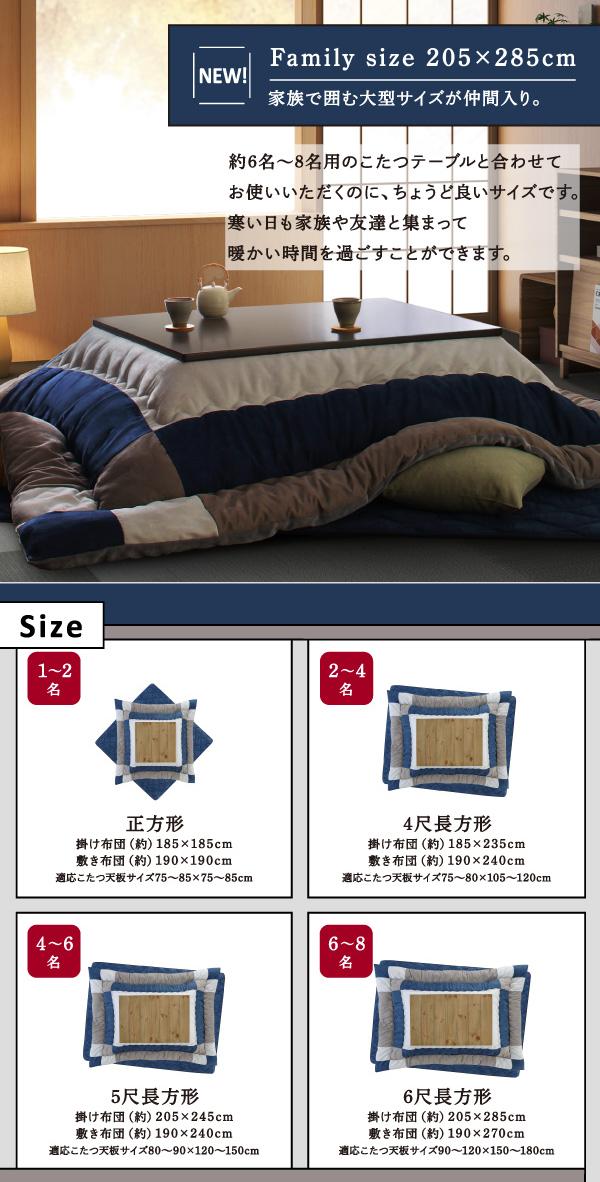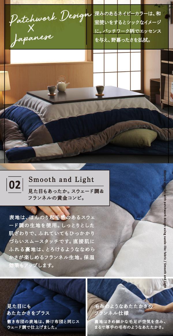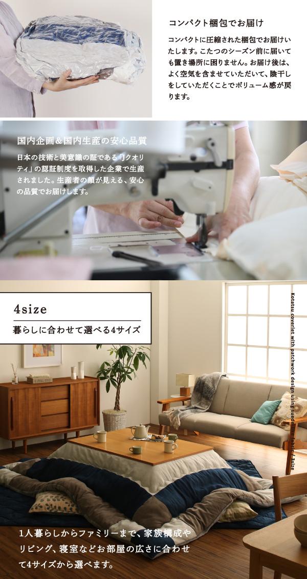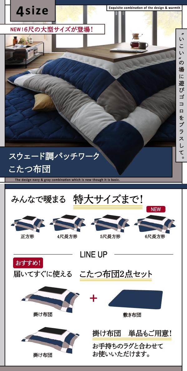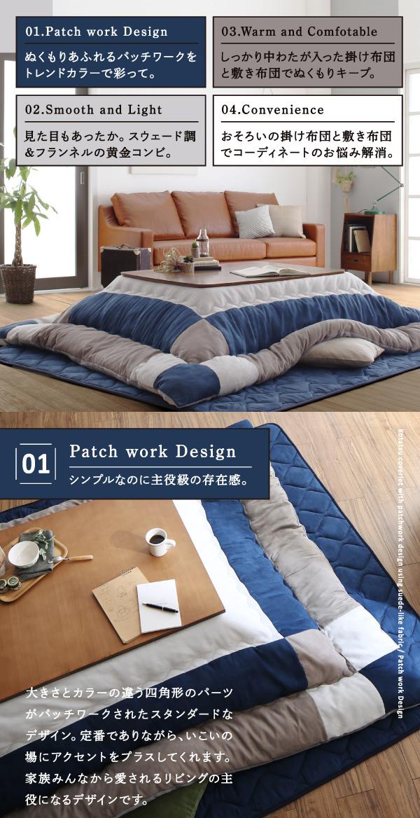 スウェード調パッチワークこたつ布団セットCOV サイズ| 幅205 奥行285cm (長方形)主素材| ポリエステル100%※掛敷2点