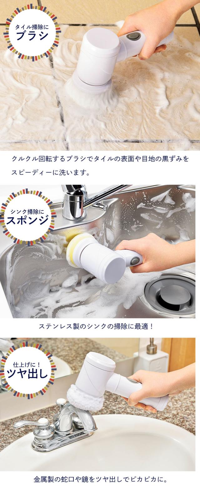 電動ブラシ 掃除 電動式 ポリッシャー 電池式 ハンディ 電動ブラシ コードレス キッチン お風呂 バス 洗面台 掃除 そうじ 浴槽 サッシ 溝 タイル おすすめ 新生活