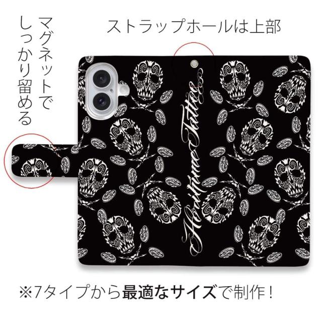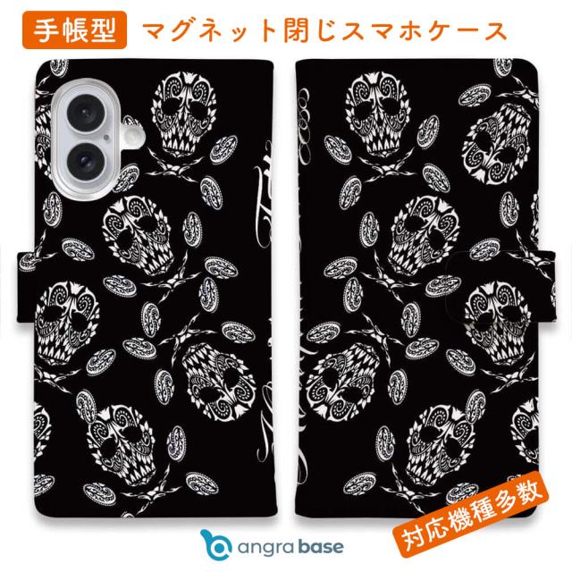 スマホケース 手帳型 カード収納 マグネット iPhone17 Pro Max iPhone Air iPhone16e iPhone16 Pro Max 16 Plus 15 Pro Max Xperia 10 VII Galaxy AQUOS ARROWS Pixel10 XL 入れ墨 刺青 タトゥー 和柄 彫姫 バンダナ柄のスカル