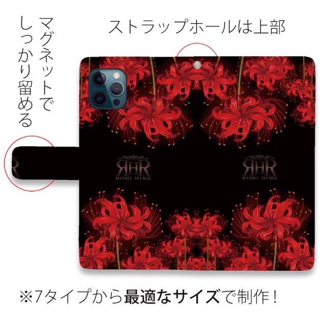 スマホケース 手帳型 カード収納 マグネット iPhone17 Pro Max iPhone Air iPhone16e iPhone16 Pro Max 16 Plus 15 Pro Max Xperia 10 VII Galaxy AQUOS ARROWS Pixel10 XL ROMI HIME 彼岸花 和柄 花
