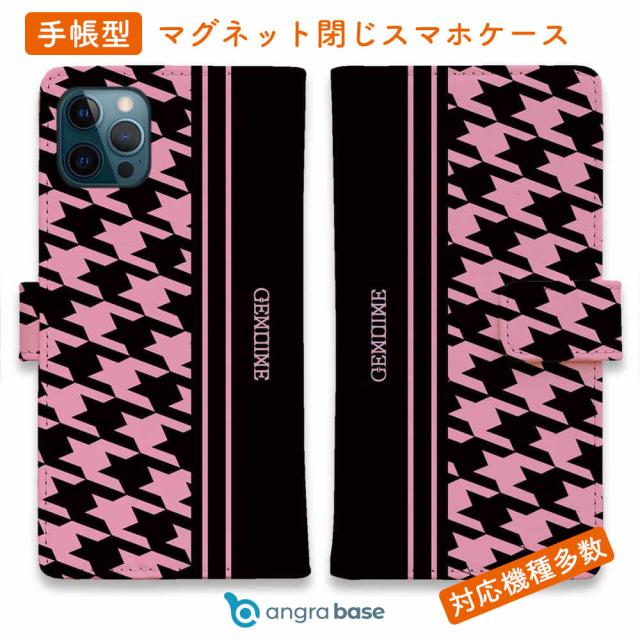スマホケース 手帳型 カード収納 マグネット iPhone17 Pro Max iPhone Air iPhone16e iPhone16 Pro Max 16 Plus 15 Pro Max Xperia 10 VII Galaxy AQUOS ARROWS Pixel10 XL Genuine 千鳥柄 ブラック&ピンク