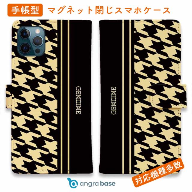 スマホケース 手帳型 カード収納 マグネット iPhone17 Pro Max iPhone Air iPhone16e iPhone16 Pro Max 16 Plus 15 Pro Max Xperia 10 VII Galaxy AQUOS ARROWS Pixel10 XL Genuine 千鳥柄 ブラック&ベージュ
