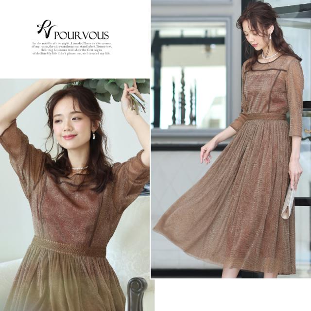 ラメチュールシアードレス【542202016】10代・20代・30代・40代・50代ドレスワンピ・服装・ワンピース・フォーマルワンピ・ドレスカジュアル・ブランド・長袖・七分袖・袖あり・ドルマンスリーブ・ミモレ丈・無地・脚長効果・ハイウエスト・着やせ・体型カバー・フレア・レース・タックデザイン・ネイビー・ベージュ・グリーン・小さいサイズ・3Lや4L・かっこいい、かわいい・即日発送・送料無料・・結婚式・婚活・披露宴・顔合わせ・発表会・演奏会・二次会・同窓会・お呼ばれ・食事会・謝恩会・親族・七五三・お宮参り・冠婚葬祭・弔事・女子会・韓国・デート・入学式・卒業式・入園式・卒園式・ママ・ピアノ・マタニティー・セレモニー・セレブ・パーティー