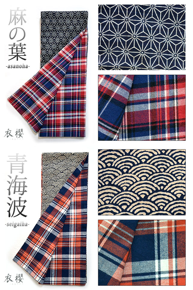 和柄とチェック柄を組み合わせた和柄ロングマフラー。