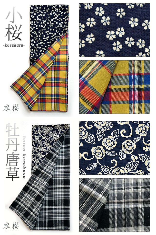 リバーシブルロングマフラー 衣櫻 和柄 和風 桜 牡丹 唐草