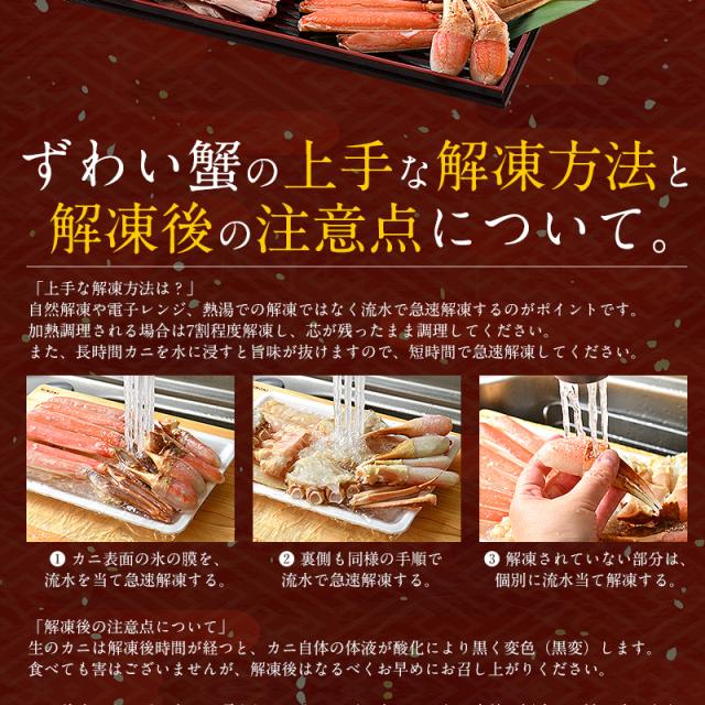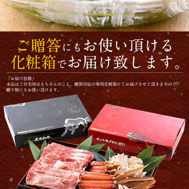 ズワイガニは解凍後お刺身や加熱調理で、黒毛和牛肩ロースは加熱してお召し上がりください。