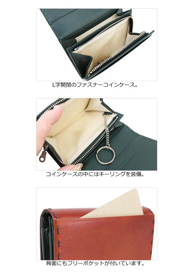 小銭入れはL字開閉のファスナー仕様。