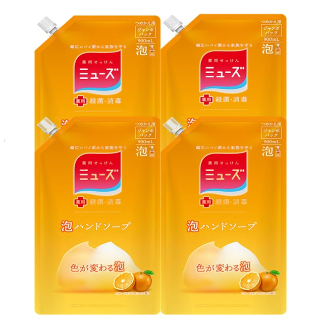 泡ミューズ ハンドソープ フルーティフレッシュ 詰め替え ジャンボ 900mL 4個セット 医薬部外品 つめかえ 大容量 ミューズ 詰替