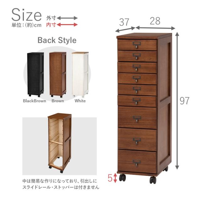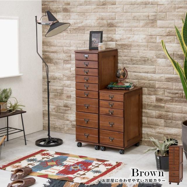 チェスト 9段 A4 ファイル 収納 大容量 引き出し 木目調 アンティーク キャスター ストッパー付き ネームプレート キッチン(代引不可)【
