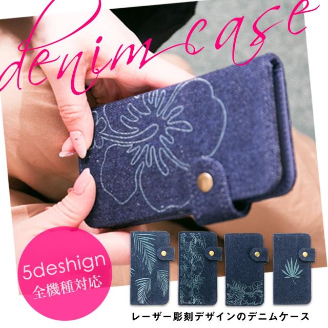 全機種対応 メール便のみ送料無料 5種類のデザイン デニム生地 デコレーション 手帳型スマホケース