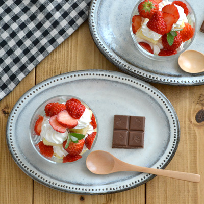 約21cmサイズで、ケーキやサラダ、サンドイッチやパン皿など幅広くお使いいただけます。