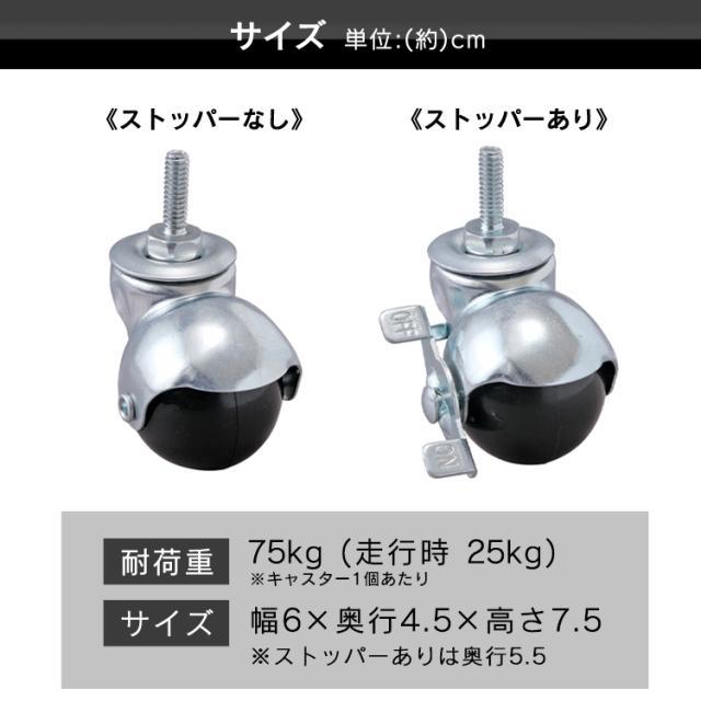 ●耐荷重:キャスター1個あたり
