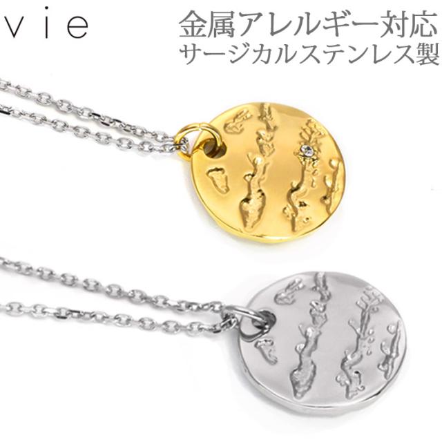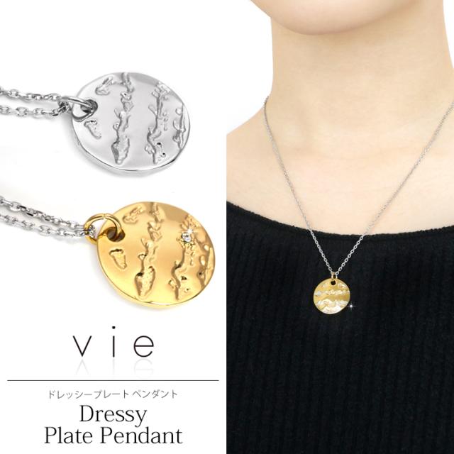 ステンレスネックレス vie ドレッシープレートペンダント ネックレスチェーン付 バイカラー