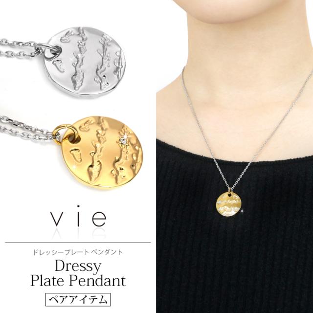 ペアネックレス2本セット ステンレスネックレス vie ドレッシープレートペンダント ネックレスチェーン付 バイカラー