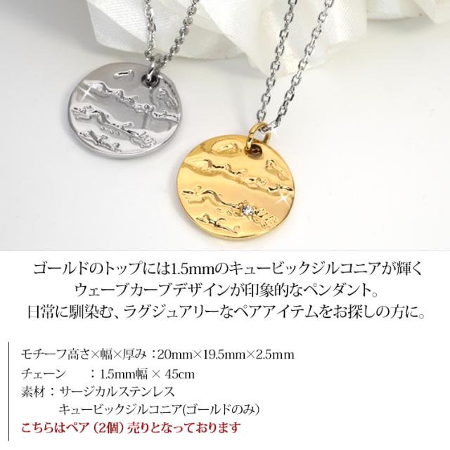 ウェーブカーブデザインが印象的なペンダント。 ゴールドには1.5mmのキュービックジルコニアが輝き、ラグジュアリーさをプラスしてくれます。 着けっぱなしにしていたり汗をかいても痒くならない、サージカルステンレス製だから 金属アレルギーの方にも安心してご使用いただけます。 温泉や海で変色する心配もないので、どこへ行く時もいつも着けていられます。 ネックレスチェーンはデザインにあわせカット小豆チェーンを使用しております。