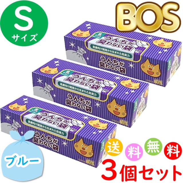 うんちが臭わない袋 BOS ボス ペット用 S サイズ 200枚入 3個セット 防臭袋 猫用 トイレ用 猫砂用 ブルー 600枚 送料無料 沖縄 離島を除く