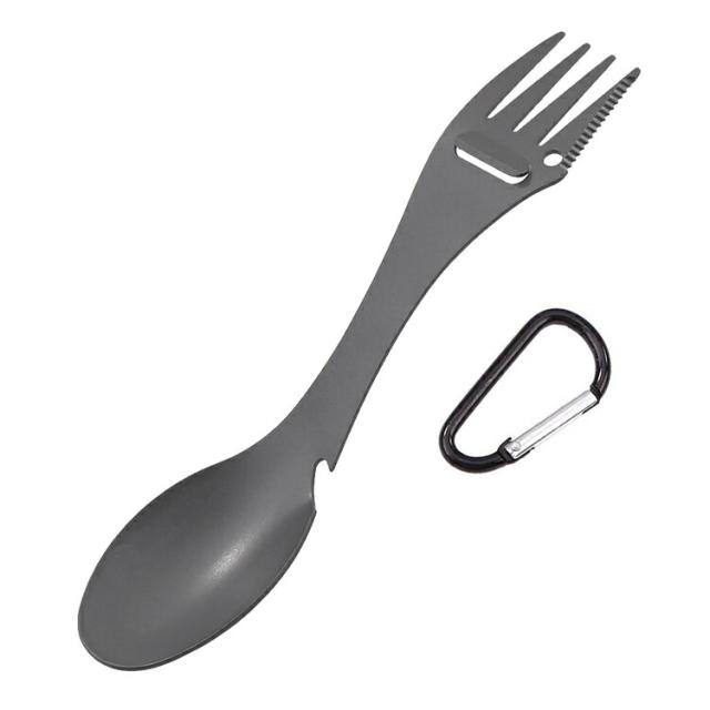 1本5役 マルチスプーン スプーン/フォーク/ミートナイフ/ピーラー/栓抜き カラビナ付 携帯に便利 アウトドア用カトラリー マルチツール TSF3IN1