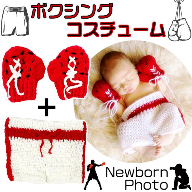 ニューボーンフォト ベビー ニット 寝相アート ボクシング グローブ 衣裳 コスチューム 帽子 パンツ セット 写真撮影 記念写真 年賀状 男の子 新生児