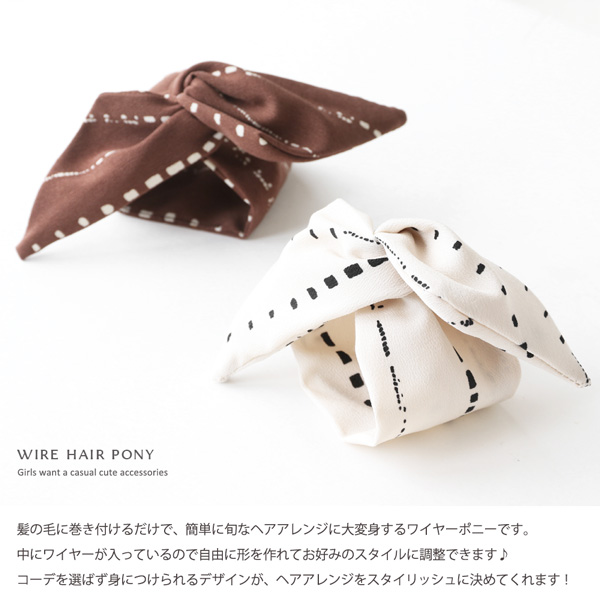 | 髪の毛に巻き付けるだけで、簡単に旬なヘアアレンジに大変身するワイヤーポニーです。 中にワイヤーが入っているので自由に形を作れてお好みのスタイルに調整できます♪ コーデを選ばず身につけられるデザインが、ヘアアレンジをスタイリッシュに決めてくれます! | |
