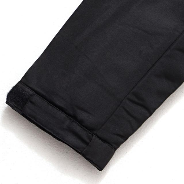 袖口にはマジックテープ、首元と裾部分には紐(ドローコード)が付いており調節が可能。