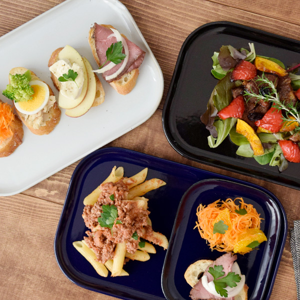 写真のように料理を盛りつけるプレートとしてはもちろん、小鉢やカップなどを乗せてもOK。
