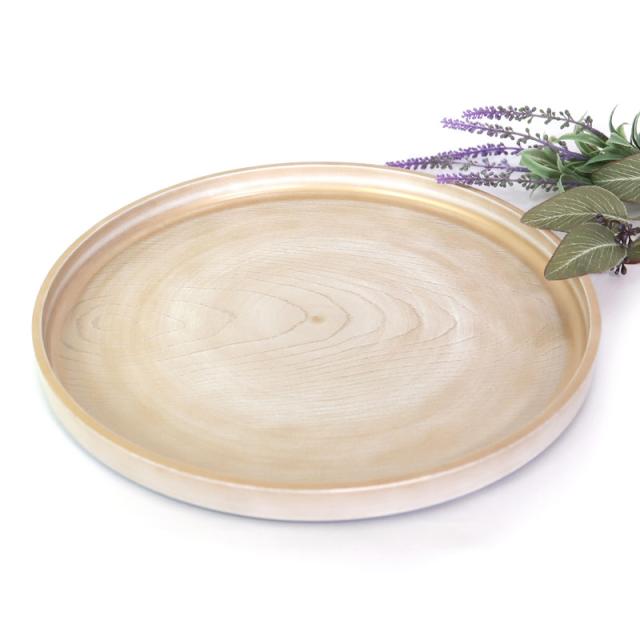 美しく、丈夫で使いやすい『ぬりもの』としてご愛用を頂いております。どうか麗しいぬりもののよさを充分味わって下さい。紀州塗り お盆 トレー 10寸 30.3cm 丸盆 金彩 白ケヤキ杢 ノンスリップ すべり止め加工 和風 和室 おしゃれ 木目調 トレイ おぼん 日本製
