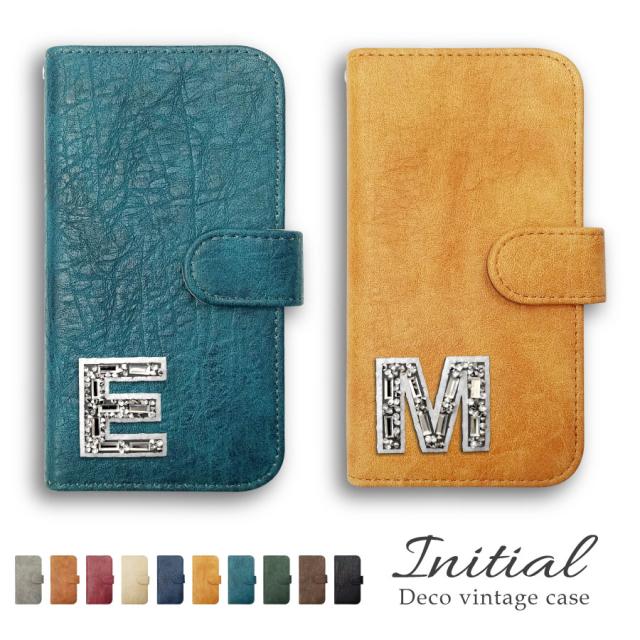 arrows NX9 F-52A アローズNX9 スマホケース おしゃれ かわいい 手帳型ケース カバー ビンテージ調 イニシャル キラキラ ワッペン アルファベット