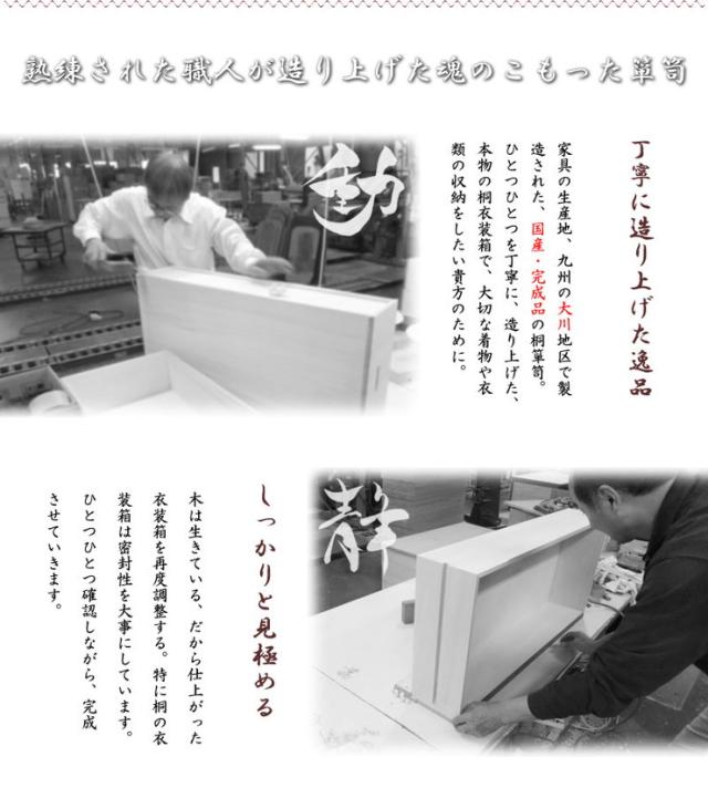 桐材は内部を一定の湿度に保とうとする働きがあるので大事な着物や洋服などを湿気から守る桐箱にしまうのがベスト。