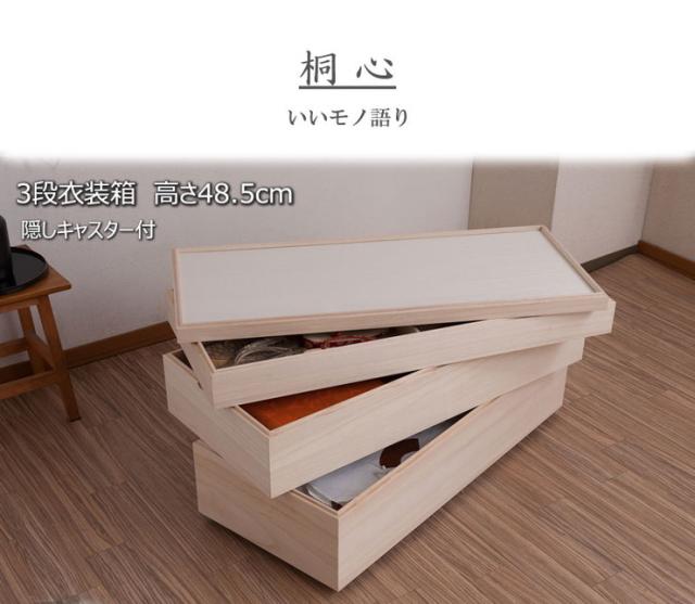 日本製 国産 完成品 キャスター付きスタッキング桐 3段 収納 桐収納 桐 押入れ収納 収納ボックス シンプル 和風 収納箱(代引不可)【送料