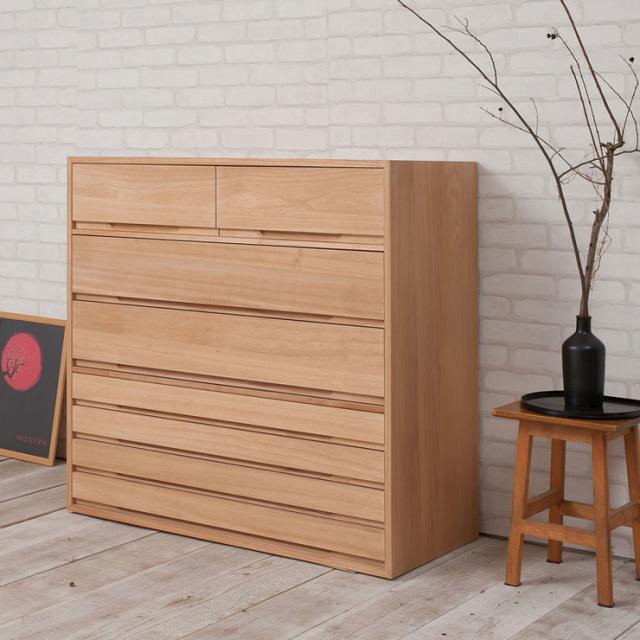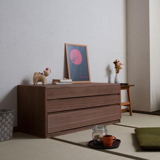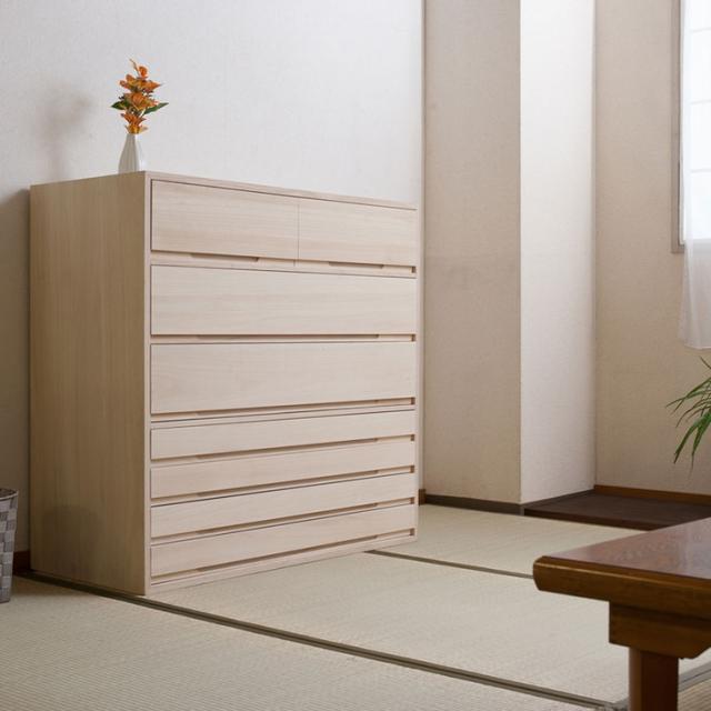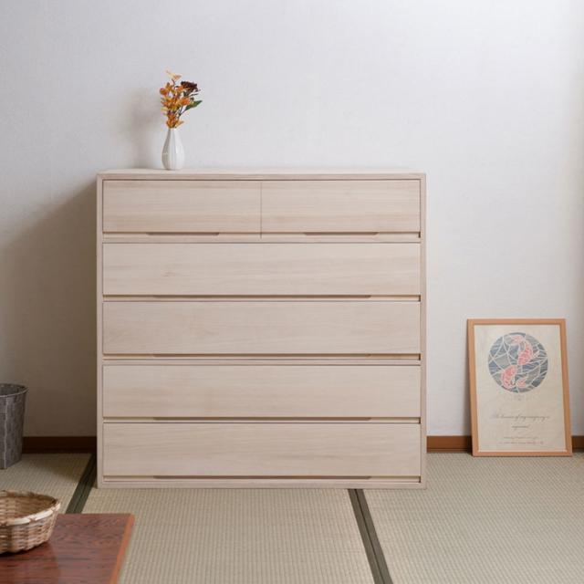 取っ手金物のないシンプルに仕上げたモダンな印象の桐箪笥。