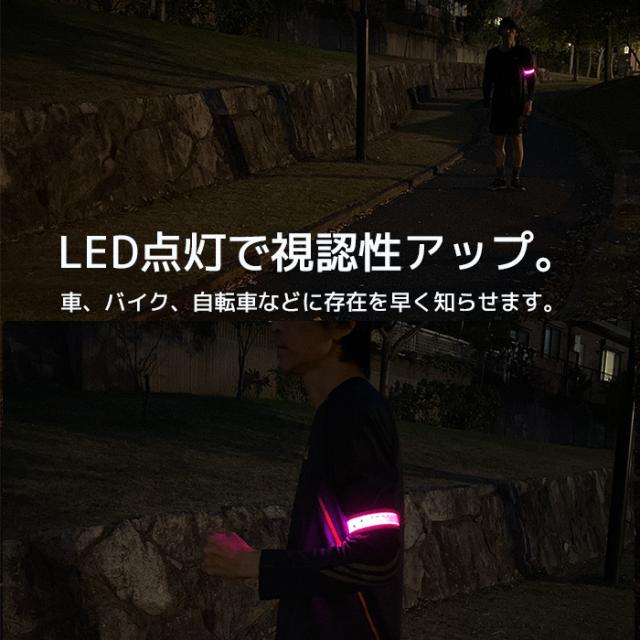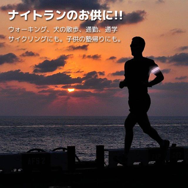 ナイトラン/ランニング/マラソン/夜間/ウォーキング/犬の散歩/通勤/通学/自転車/サイクリング/反射板/リフレクター/光る/アームバンド/リストバンド/充電式/USB充電
