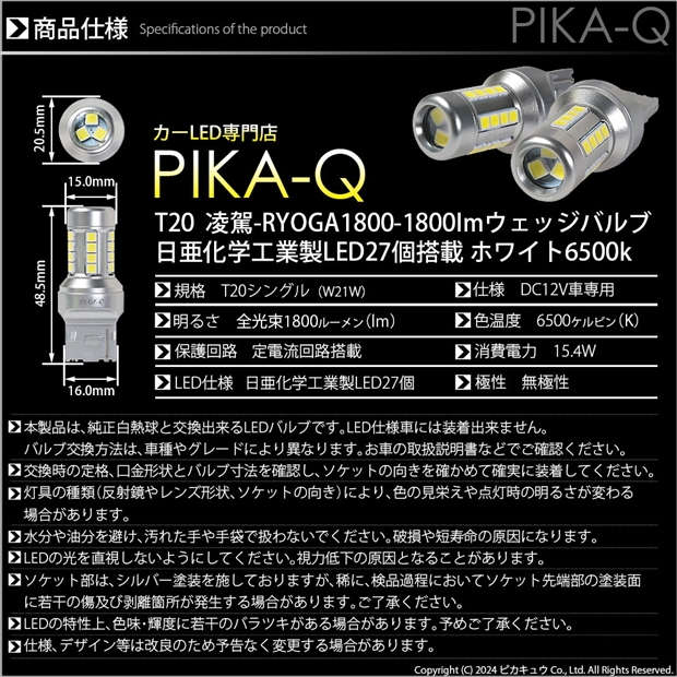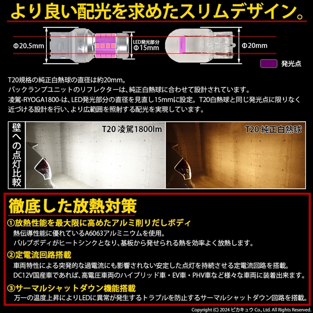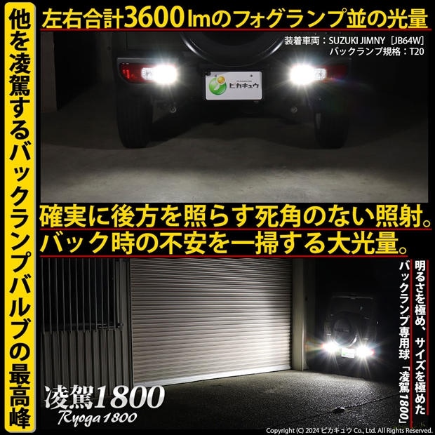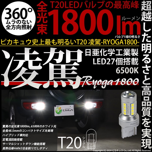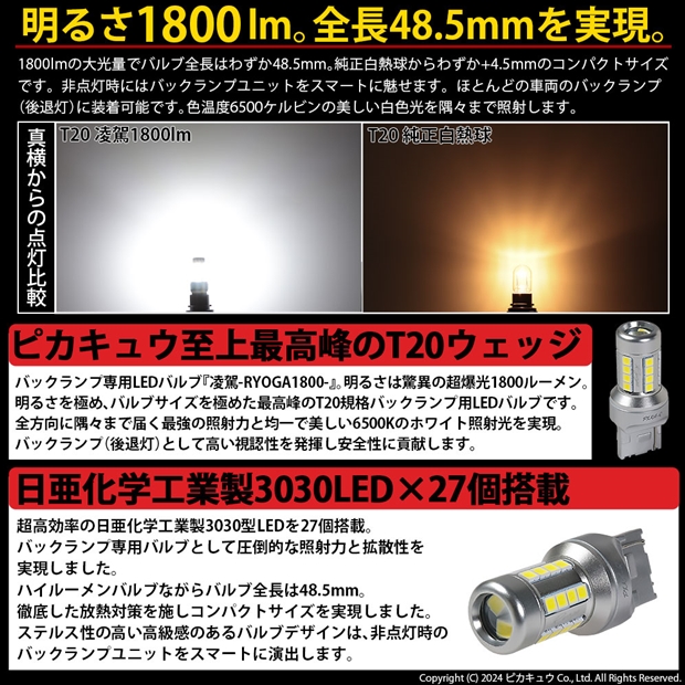 ピカキュウ,LED専門店,LEDバルブ,日亜化学工業製LED,T20,バックランプ専用,驚異の明るさ1800lm,凌駕1800,りょうが1800,爆光バックランプ球