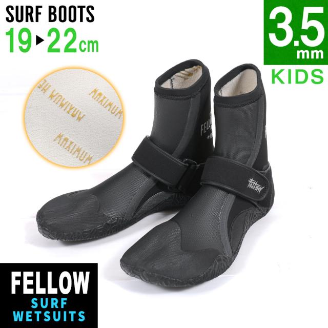 FELLOW サーフブーツ 3.5mm キッズ 19-22cm ウェットブーツ サーフィン 保温 裏起毛 速乾 SUP スプリット
