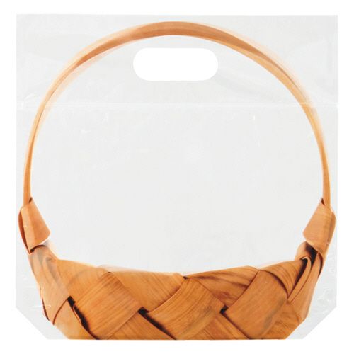●かごがプリントされたジップ付きバッグのMサイズ。